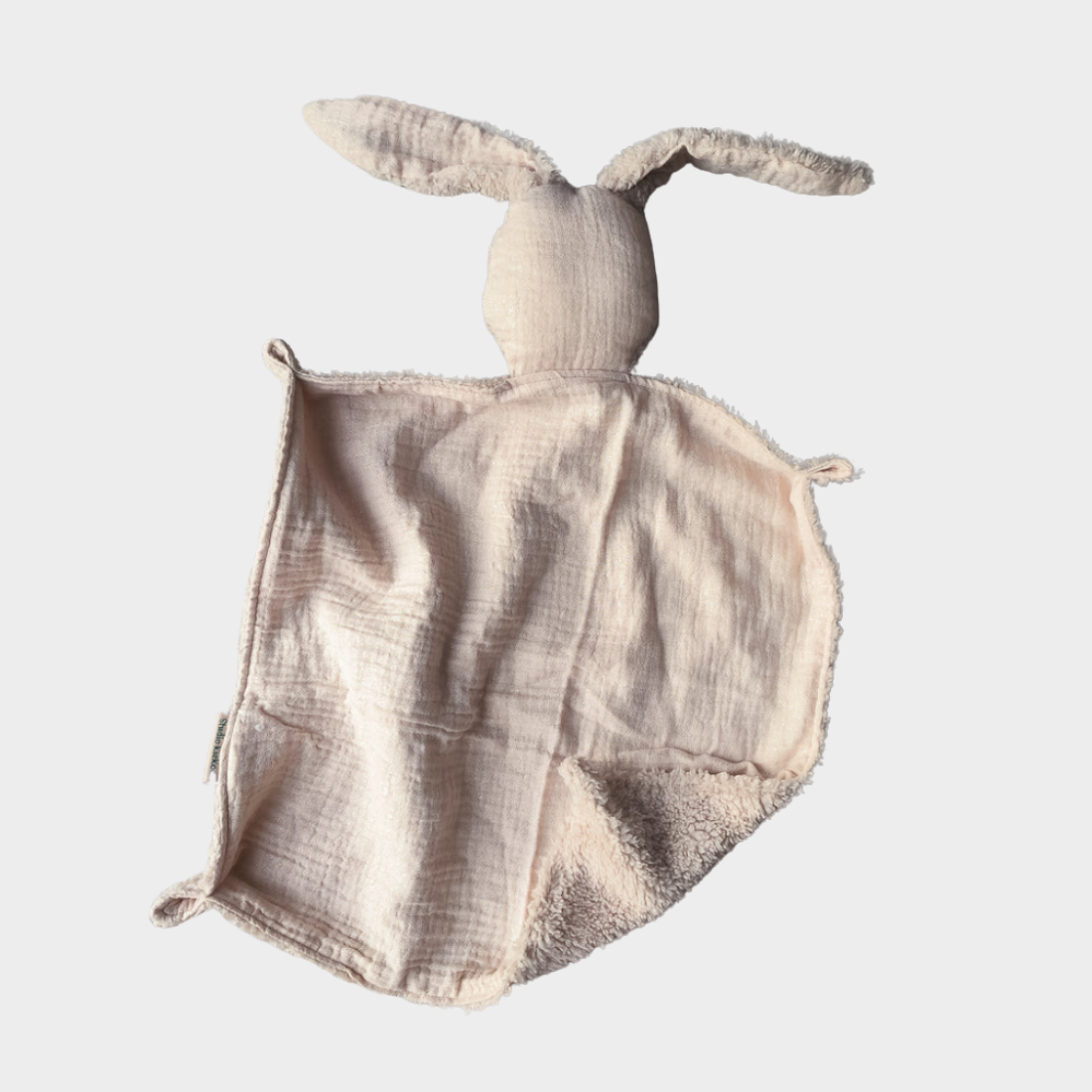 Dit knuffeltje heeft een hydrofiele voorkant met een gouden glittertje (zie foto).